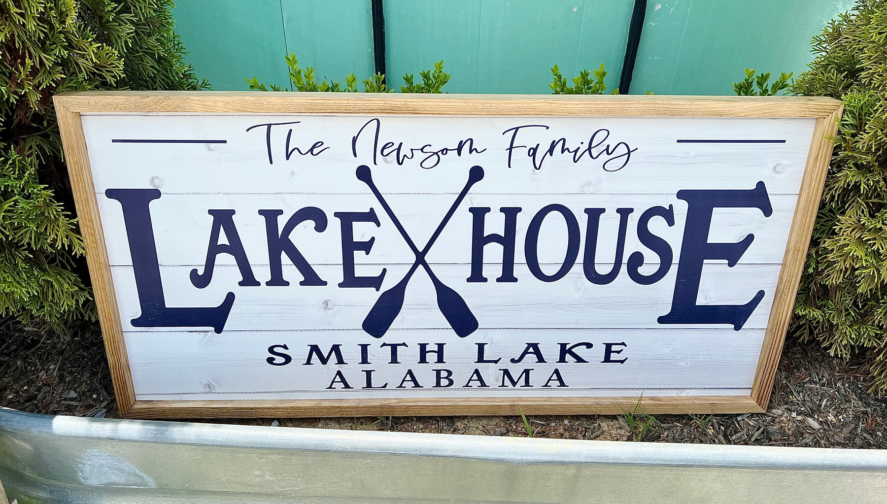 - "Lake House with custom lake and family name"