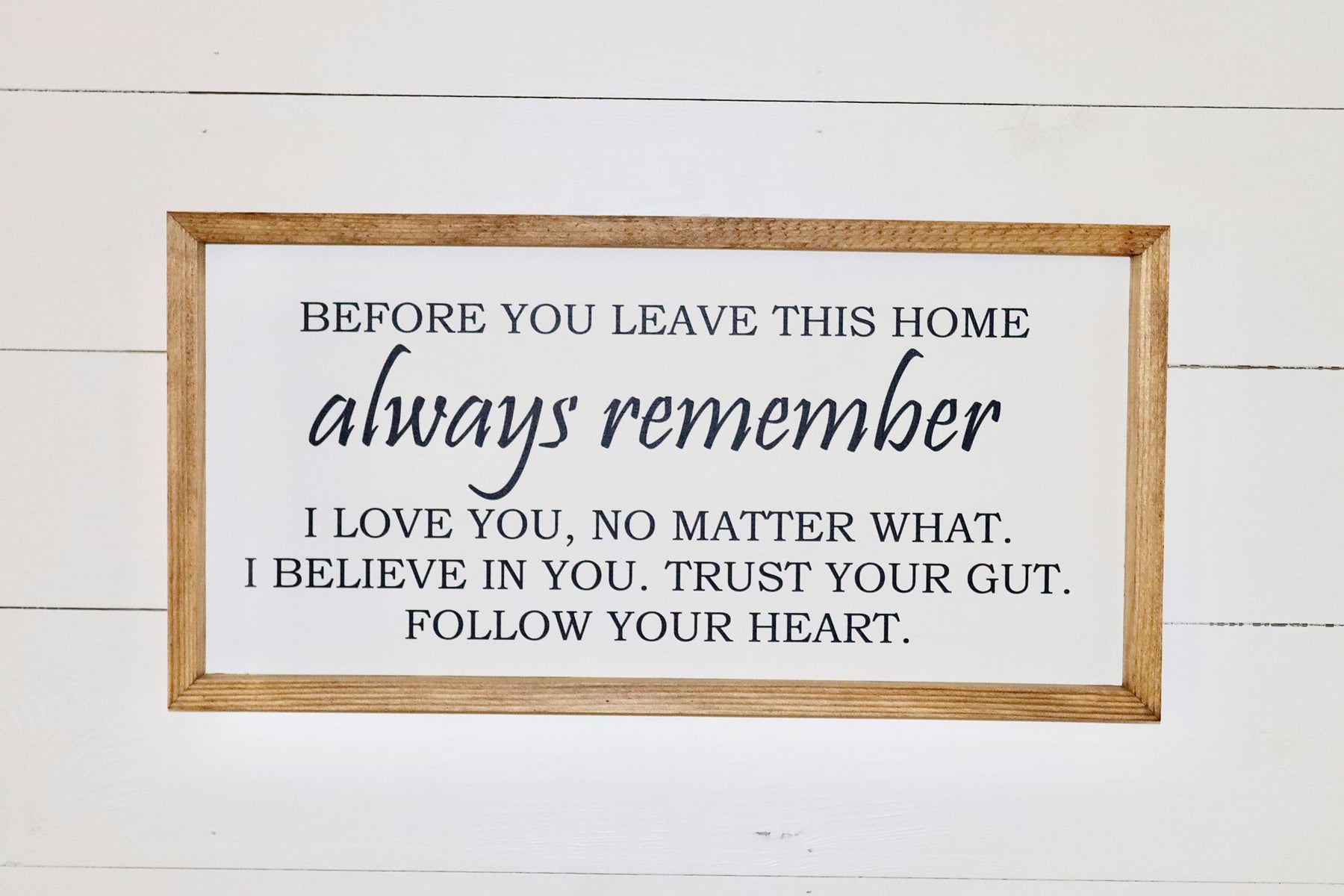- "Before you leave this home always remember I love you, no matter what. I believe in you. Trust your gut. Follow your heart."