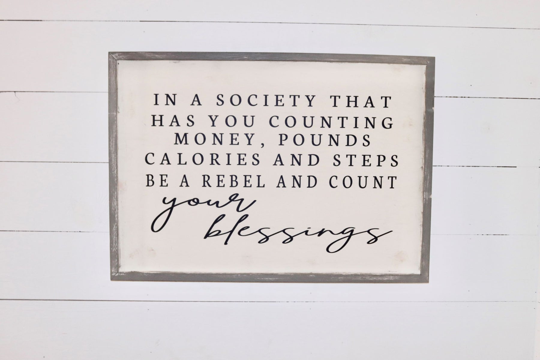 - "In a society that has you counting money, pounds calories and steps be a rebel and count your blessings"